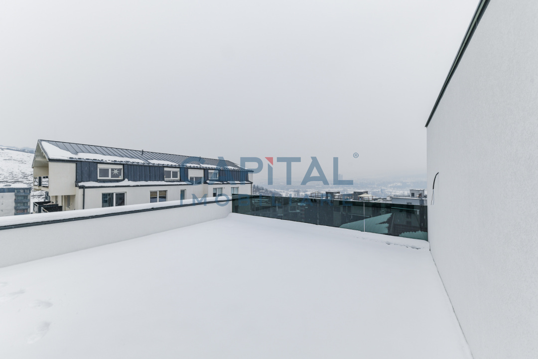 Scările exterioare și pervazele sunt placate cu granit, iar terasele sunt securizate cu balustrade din sticlă securizată de 16 mm. Proprietatea reprezintă o alegere potrivită pentru cei care își doresc o locuință modernă, eficientă energetic și poziționată într-o zonă apreciată a orașului.