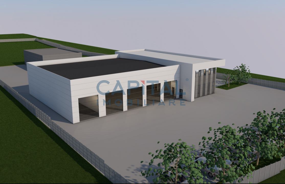 teren intravilan în suprafață de 10 000 mp, situat în localitatea Iclod, județul Cluj, cu front generos de 60 ml la drumul național. Proprietatea dispune de autorizație de construire și proiect aprobat pentru hală de servicii auto.