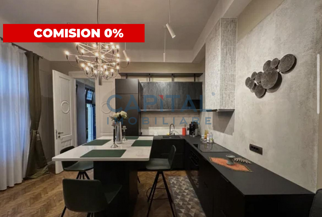 Capital Imobiliare propune spre vanzare, fara comision din partea cumparatorului, un apartament cu 3 camere in suprafata de 77 mp complet renovat, pozitionat la parterul unei cladiri istorice cu 2 etaje, situata la limita zonei centrale a orasului. Locuinta dispune de tavane inalte, compartimentata in – hol intrare, livng cu bucatarie open space, bucatarie dotata cu mobilier modern si electrocasnice de ultima generatie, pregatita pentru a raspunde tuturor nevoilor cotidiene, dormitor, camera pentru oaspeti, 1 baie. Confortul termic este asigurat de centrala termica proprie. Va asteptam cu drag la vizionare