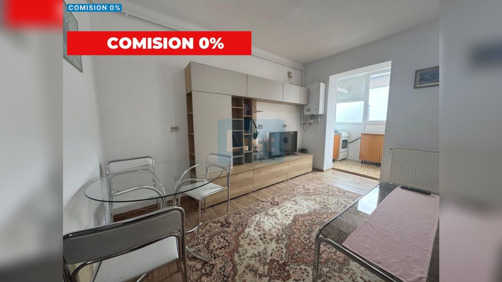 Compartimentare: hol, living, bucătărie pe balcon, dormitor, baie
