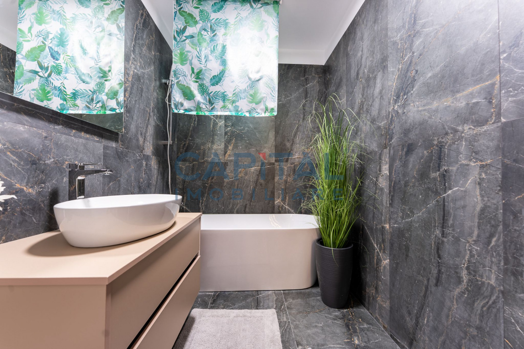 Baie spațioasă dotată cu cadă.