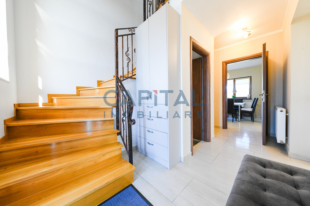 Proprietatea dispune de 5 camere spațioase, 3 băi, bucătărie complet utilată, 3 dormitoare, pod, terasă și garaj mare, camera tehnica. Curtea este frumos amenajată, cu livadă, zonă de relaxare si loc de joaca pentru cpii. Construcția este solidă, izolată cu polistiren de 10 cm, acoperită cu țiglă ceramică, dotată cu simineu, centrală termică pe gaz, oferind confort și eficiență energetică. Locație ideală pentru o familie care caută spațiu, liniște și aer curat, la doar câteva minute de Cluj-Napoca. Va asteptam cu drag la vizionare