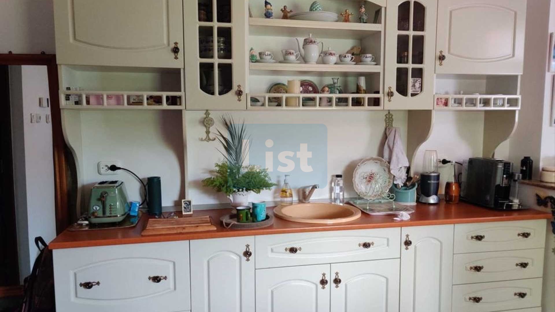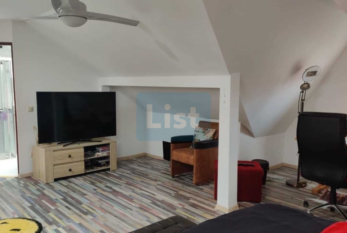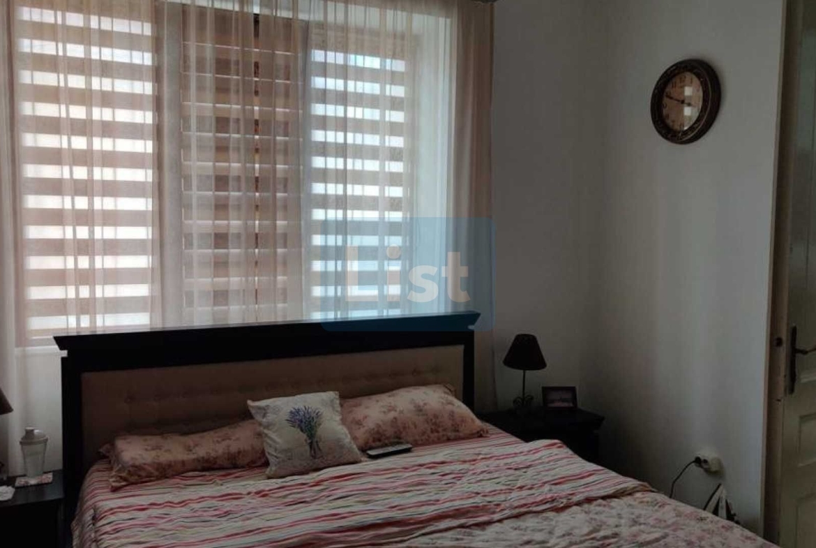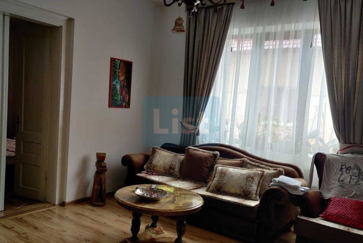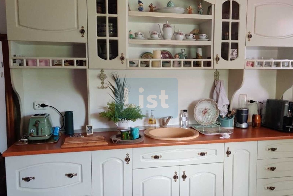 The land area is 750 sq.m. without the house area. The building consists of a kitchen, 4 bedrooms and 2 bathrooms; and in the courtyard has a filigree, a summer kitchen, a courtyard bathroom and cellar. The heating is gas (central), the house is connected to the local water and sewage network but also has a water heater.