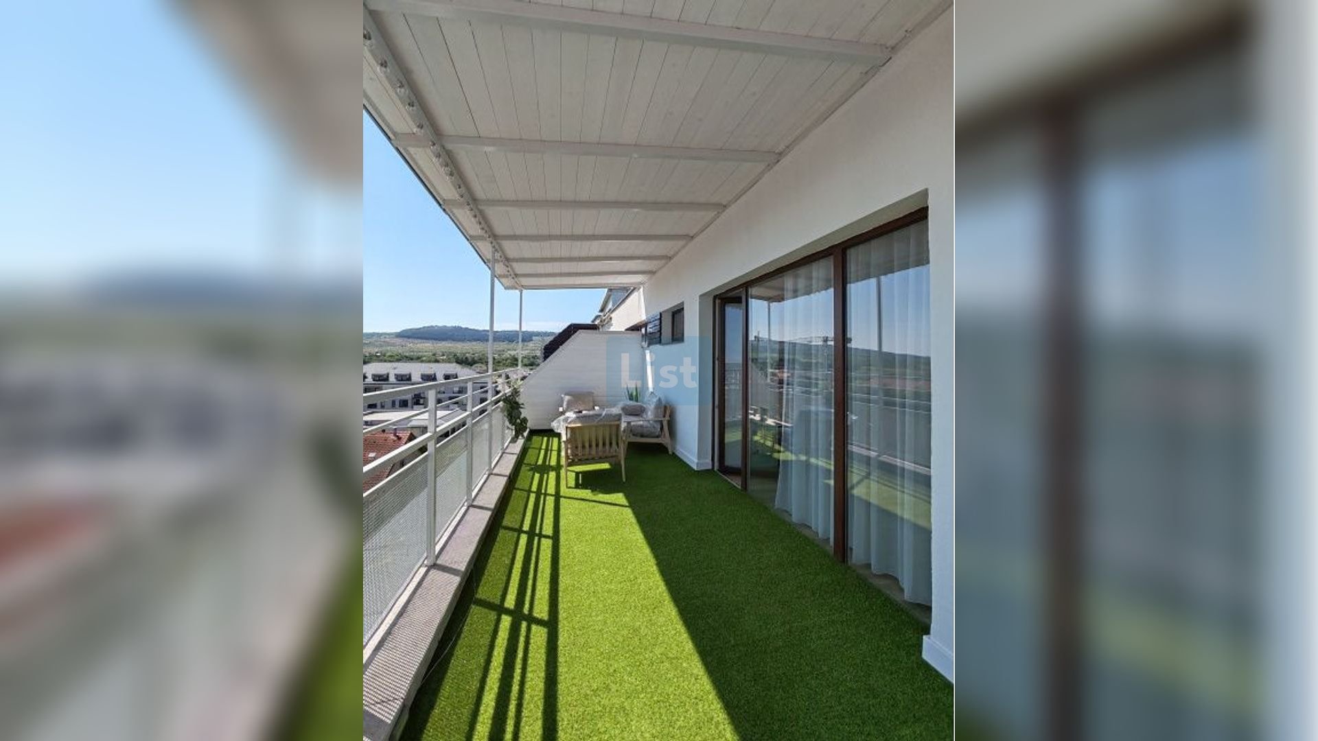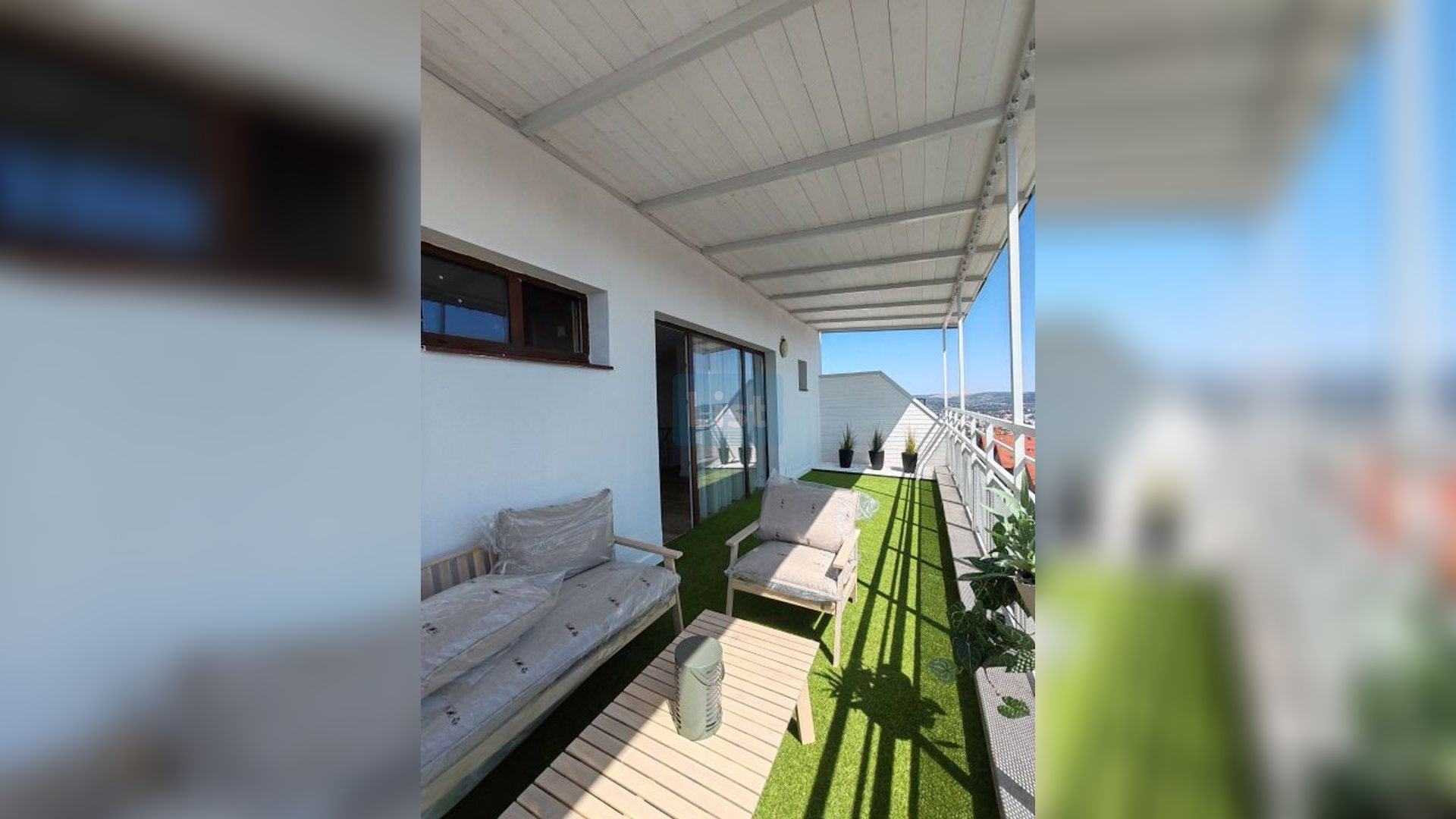 -la etajul superior: living, chicinetă, baie si 2 terase.