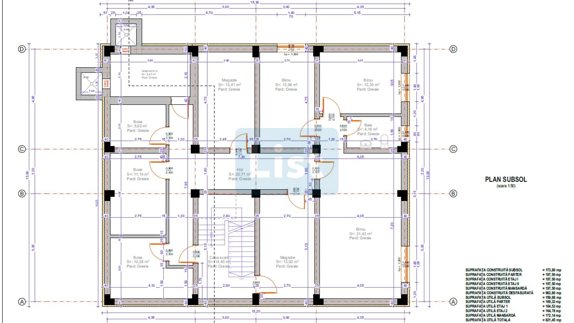 Compartimentare – open space + grupuri sanitare, inclusiv grup sanitar persoane cu handicap