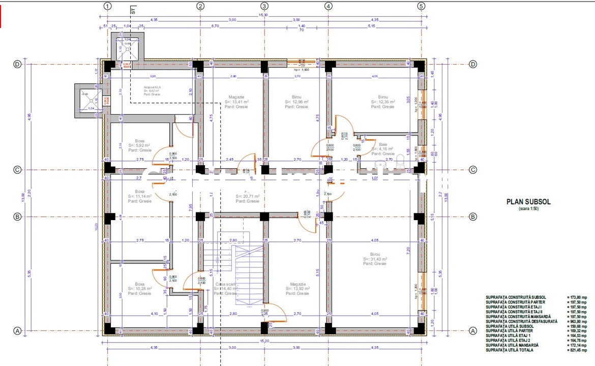 Compartimentare – open space + grupuri sanitare, inclusiv grup sanitar persoane cu handicap