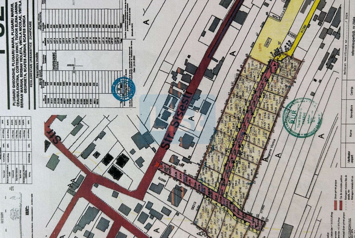Parcelare existentă: 10 loturi între 514 – 566 mp