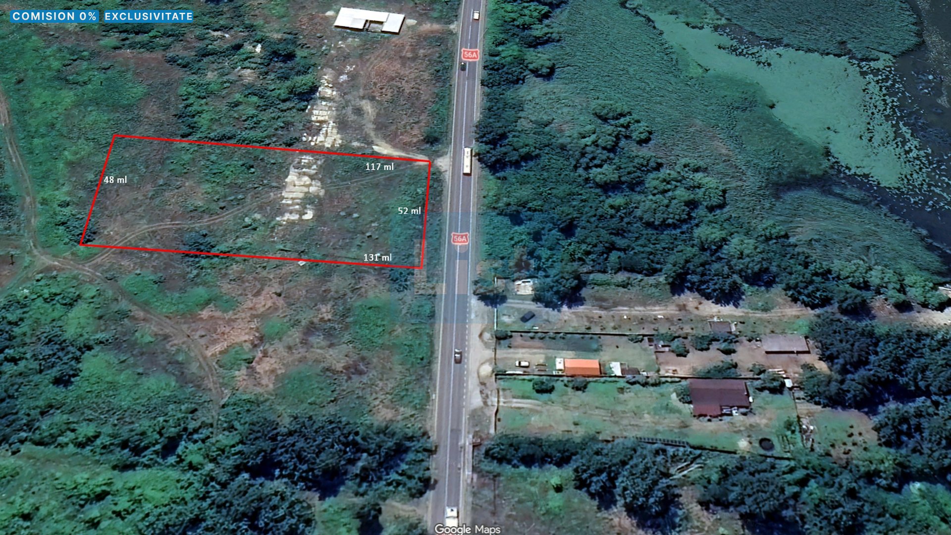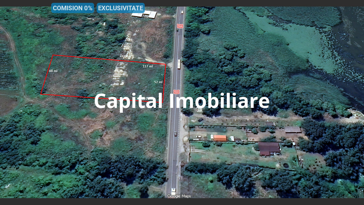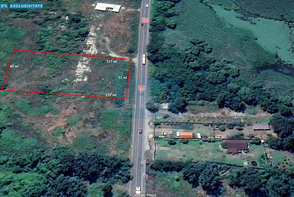 Terenul este plat, cu o deschidere generoasă de 52 metri liniari la drum național, beneficiind de trafic intens, ceea ce îl face ideal pentru activități comerciale și logistice.