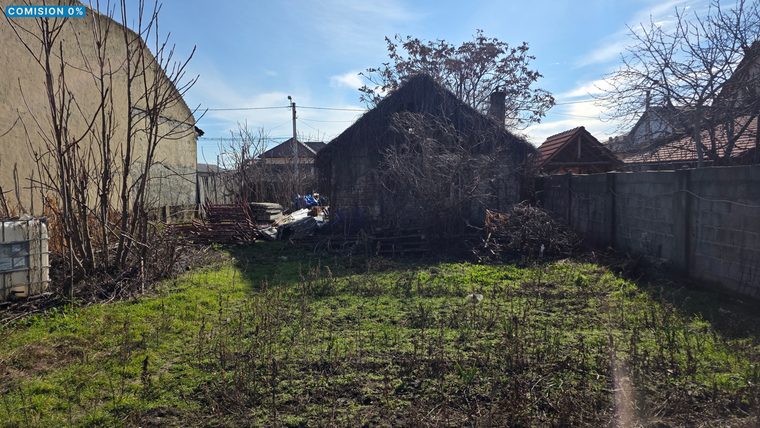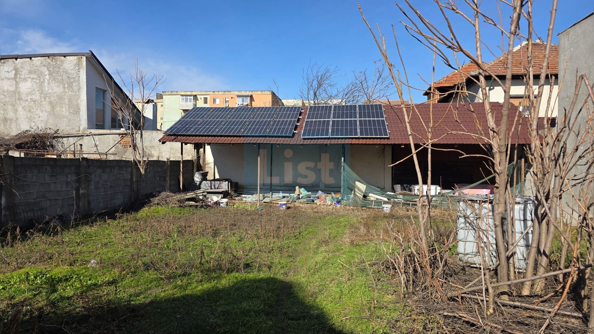 Pe teren se află o casă veche din cărămidă, cu suprafața de 40 mp, care poate fi renovată sau demolată, în funcție de planurile viitorului proprietar, cat si un sopru pe care sunt montate 16 panouri solare, cu o capacitate totală de 7 kW.