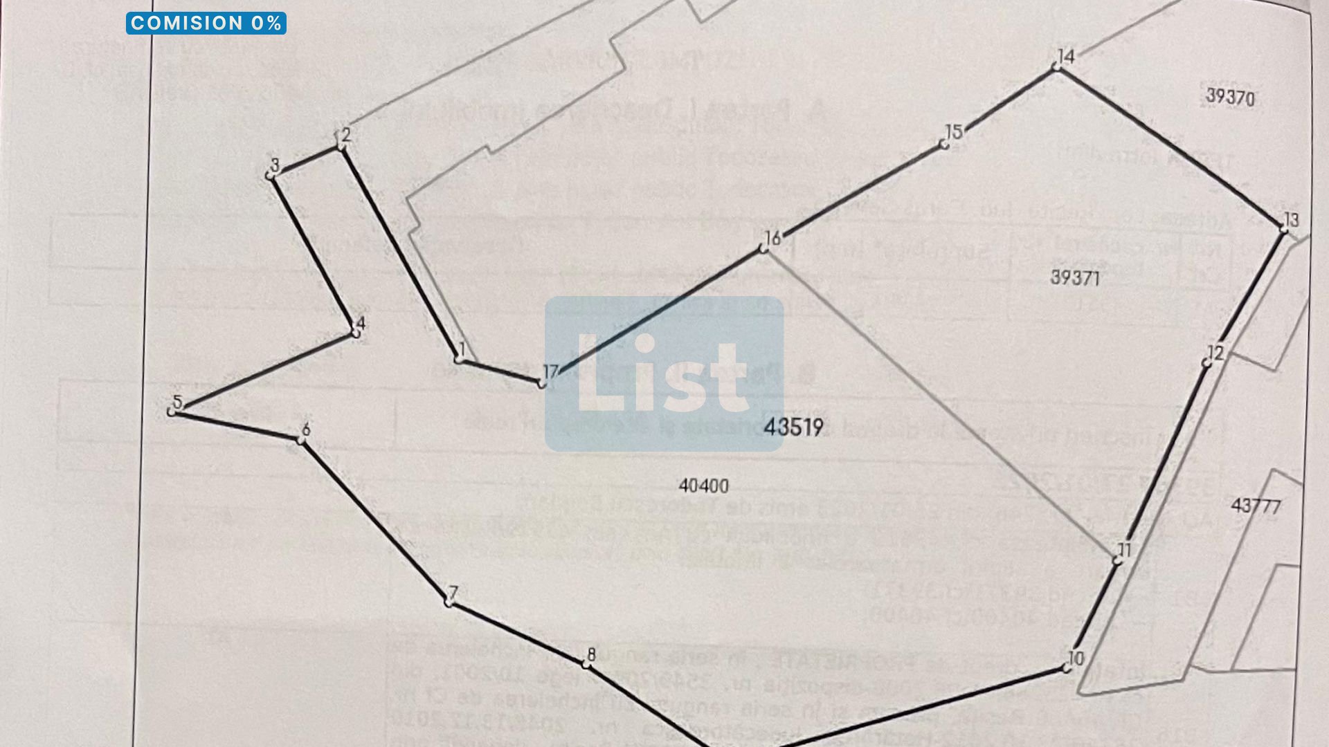 Terenul este identificat în documente prin numărul cadastral și numărul topografic .