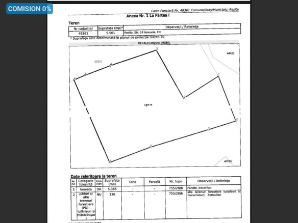 Terenul este impadurit in unele locuri, necesita curatare si este usor in panta.
