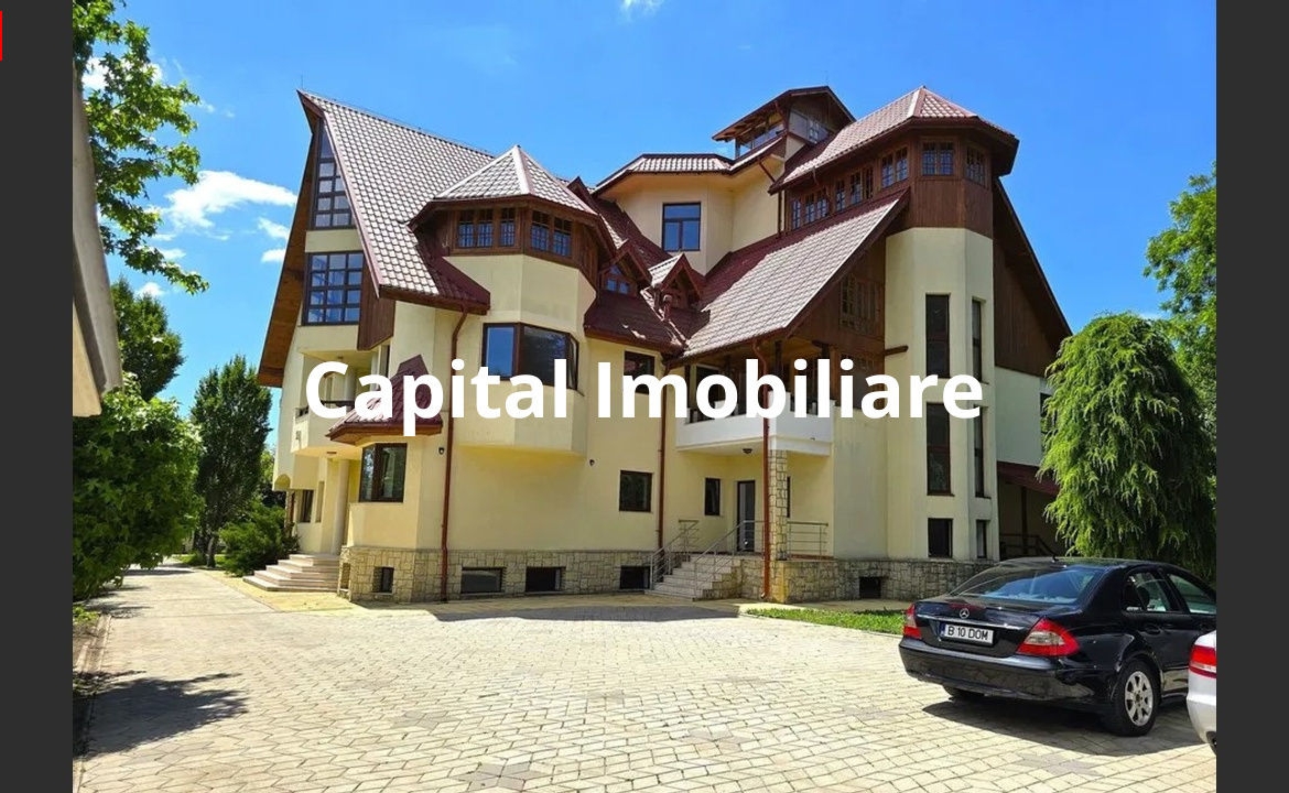 Casa principala 1000 mp. utili, cca 1200 mp. construiti: Demisol + parter + 2E + M + terasa. 15 camere, 7 bai, living, bucatarie, demisol, camera tehnica, spatii depozitare si terase.
