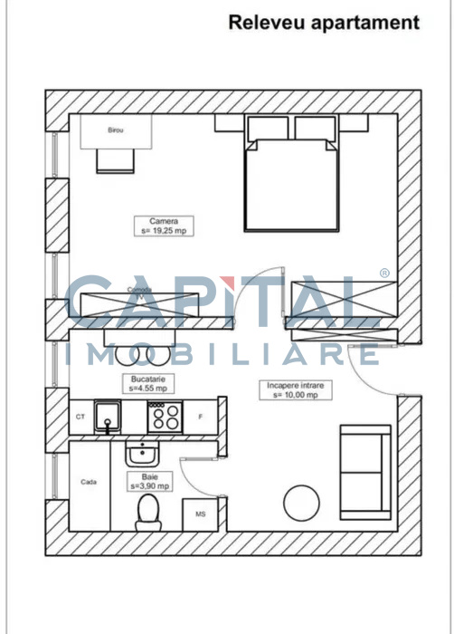 In CF apare apartament, cu 2 incaperi.