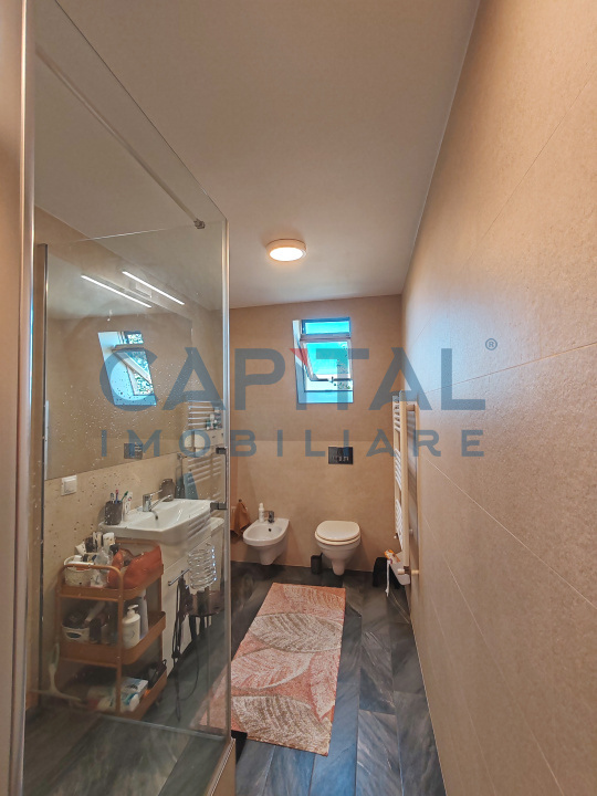 Apartamentul este pozitionat la etajul 1 intr-o vila cu 1 etaj si mansarda avand orientare nord-vestica.