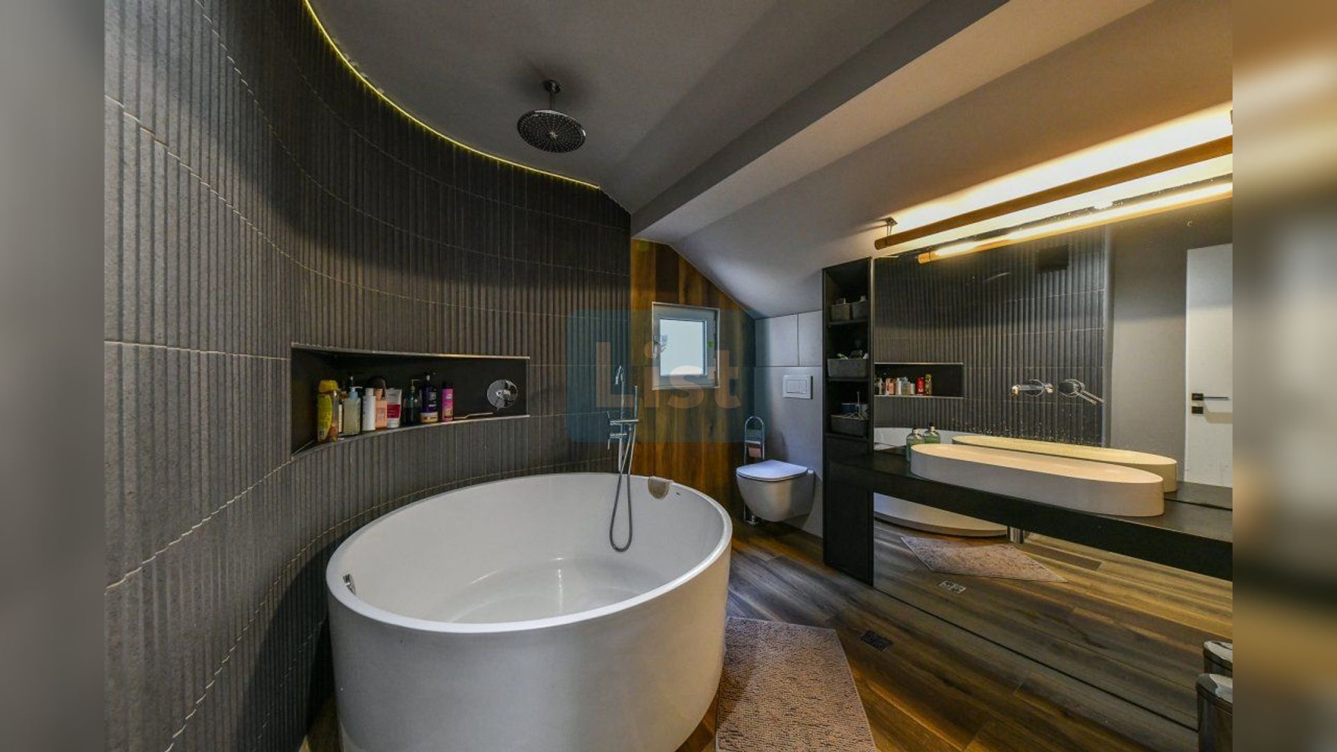 Podeaua este finisat cu neocement decorativ, parchet, gresie si faianta moderna, geamuri de tip velux, usile interioare sunt marca Filomuro din mdf, usa de intrare metalica,