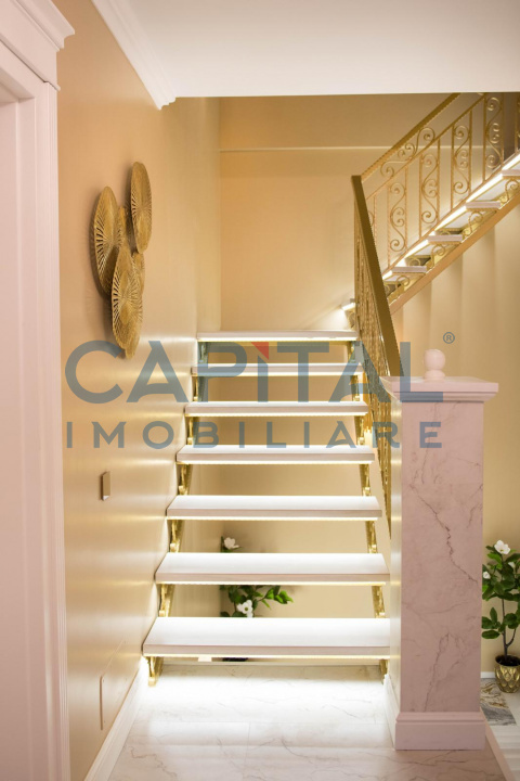 Casa are 300mp utili + garaj, terasă și balcon, cu un teren de 700mp. Compartimentat :