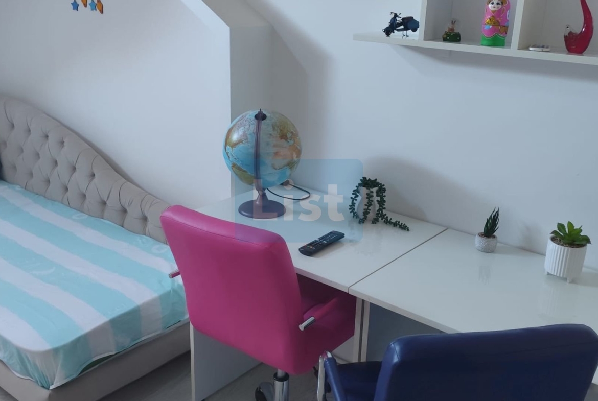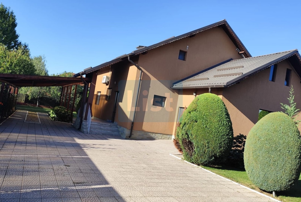 Amplasata pe un teren de 955 mp cu orientare sud, este construită din cărămidă, are încălzire centrală, bucataria cu incalzire in pardoseala și este complet mobilată. Include 5 locuri de parcare sub pergola.
