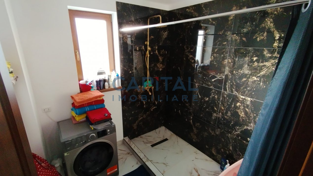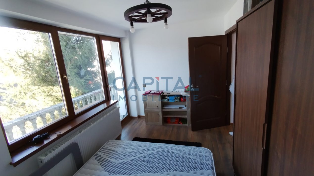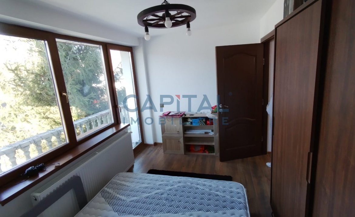 etaj : 4 dormitoare, wc serviciu, baie generoasa cu duș separat. + 3 ieșiri pe balcoanele de la etaj,